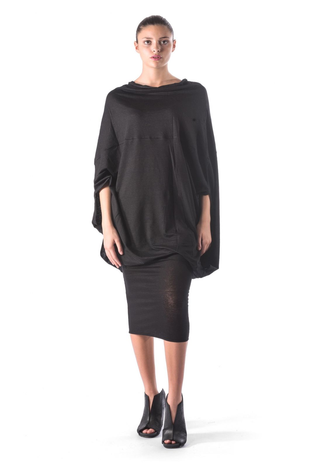 multifunctional overall in cupro jersey with a handmade print. (92% cu 8% ea)