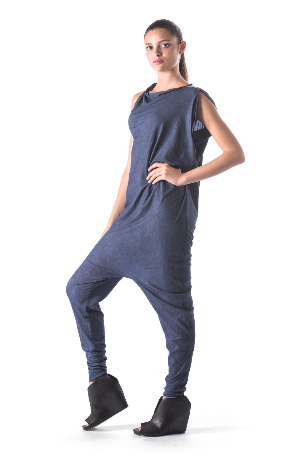 multifunctional overall in cotton jersey with a handmade print. (92% co 8% ea)